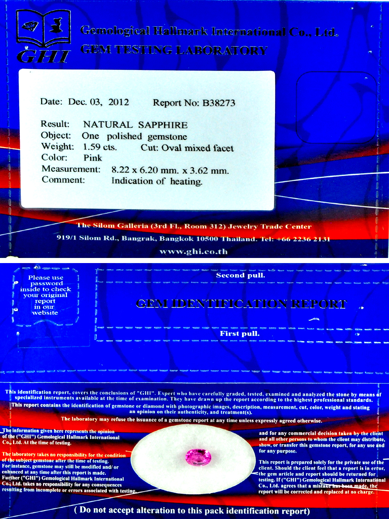 Certified Pink Sapphire 1.59 Ct. Oval 8.22 x 6.20 Mm Natural Gemstone Madagascar