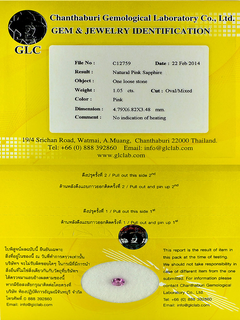 Pink Sapphire 1.05 Ct. Certified VS Oval Natural Unheated Gemstone Madagascar