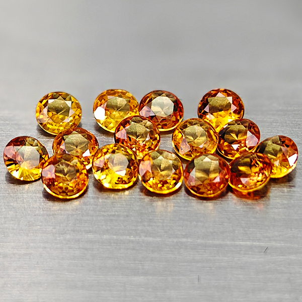 Natural Orange Yellow Songea Sapphire 1.36 Ct. 15 Pcs Round Shape 2.9 Mm Gems