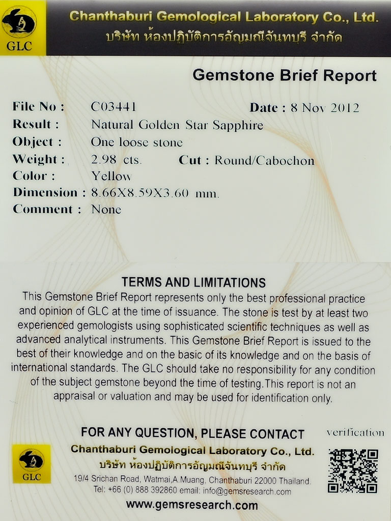 Certified Star Sapphire Golden 6 Ray 2.98 Ct. Round Cabochon Natural Gemstone