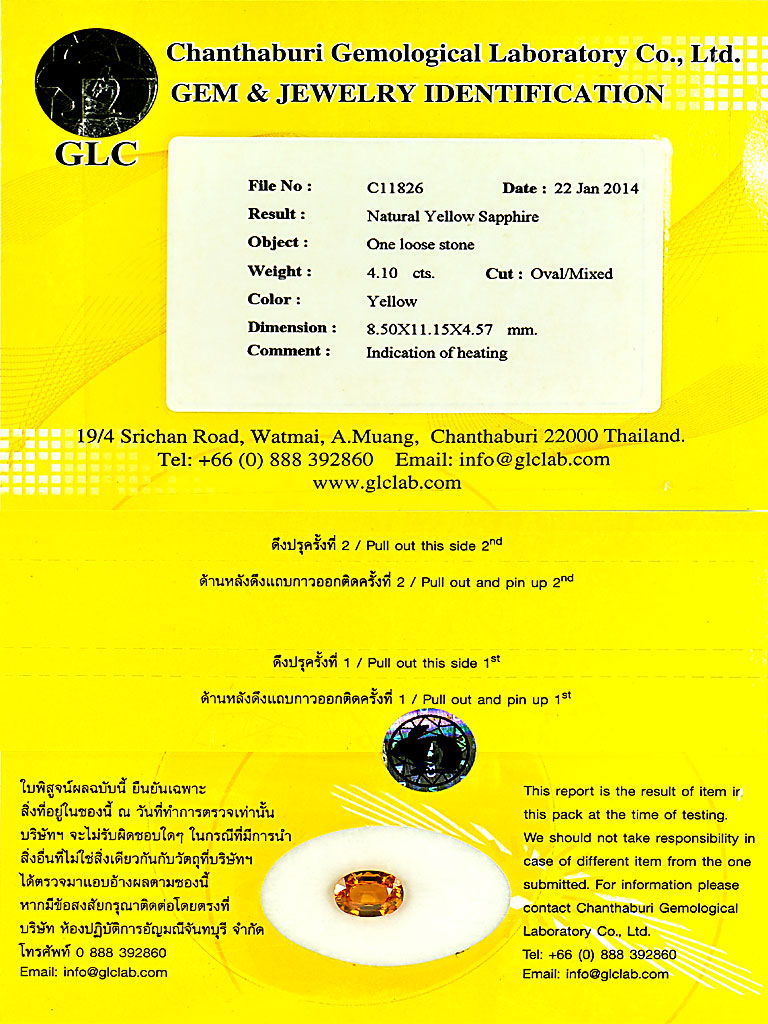 Yellow Sapphire Certified 4.10 Ct. Clean Oval 8.50 x 11.15 Mm. Natural Gemstone