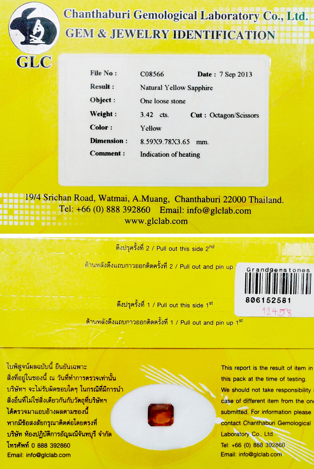 Yellow Sapphire Certified 3.42 Ct. Clean Octagon 8.59 x 9.78 Mm Natural Thailand