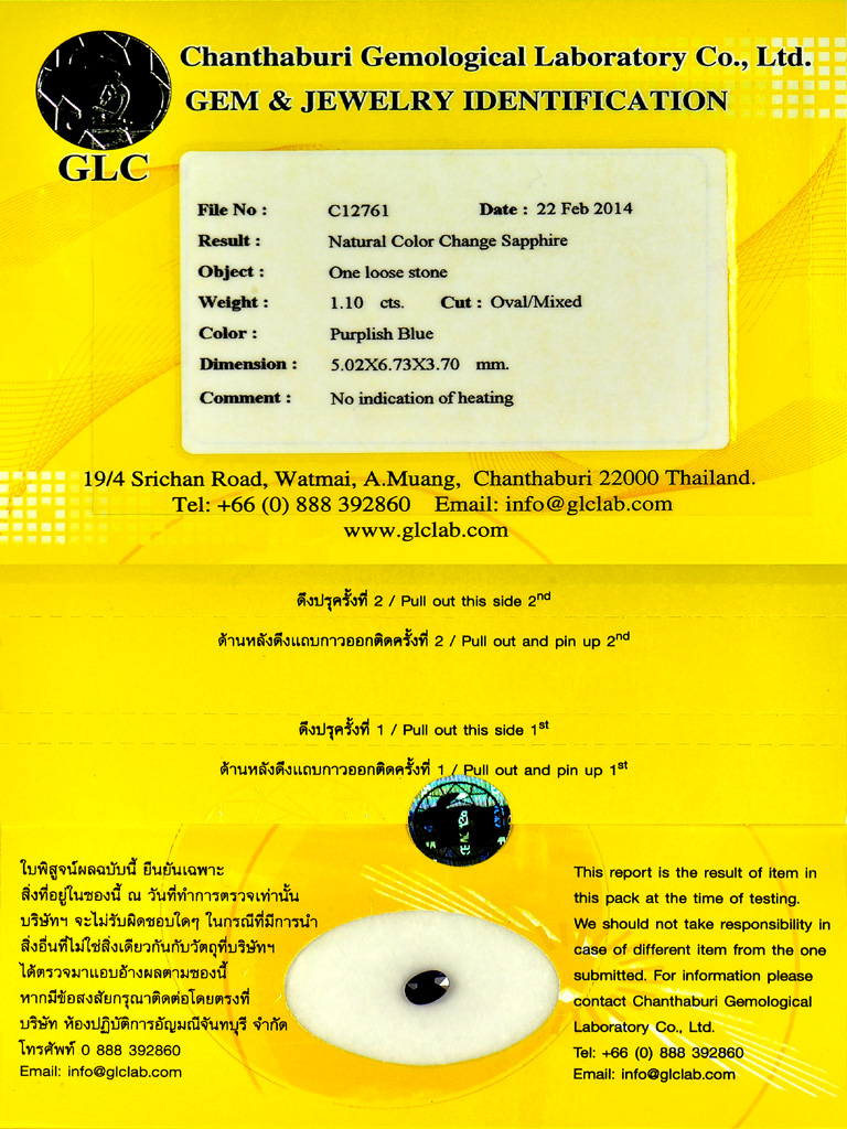 Sapphire Color Change 1.10 Ct. Certified Natural Unheated Gemstone Oval Shape