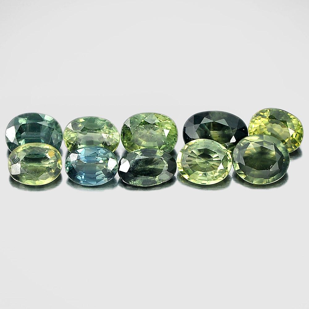 3.92 Ct. 10 Pcs. Oval Shape Natural Gemstones Yellowish Bluish Green Sapphire