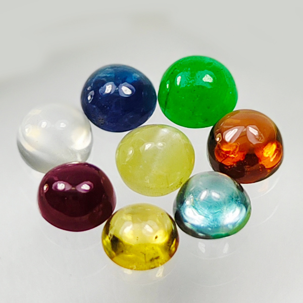 Natural All Mix Gemstone 1.55 Ct. 8 Pcs Mix Shape Round Cabochon 3.4 to 3.1 Mm