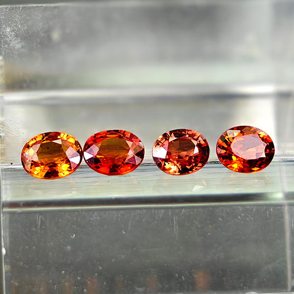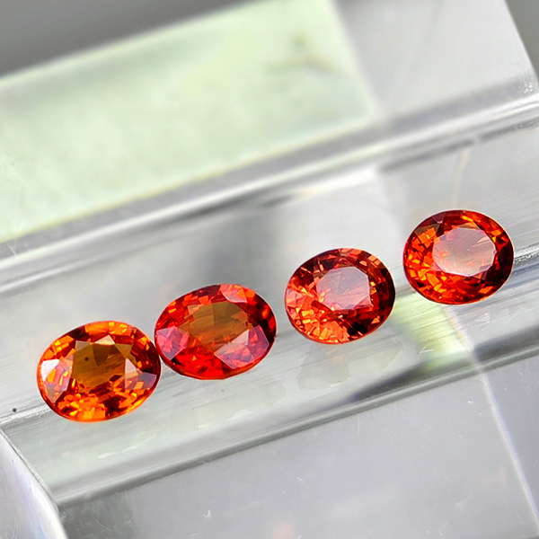 Natural Orange Red Songea Sapphire 2.10 Ct. 4 Pcs. Oval Shape 5.1 x 4.2 Mm Gems