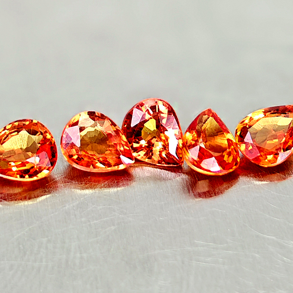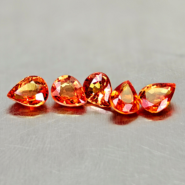 Natural Orange Red Songea Sapphire 1.97 Ct. 5 Pcs. Pear Shape 5.2 x 4.2 Mm Gems