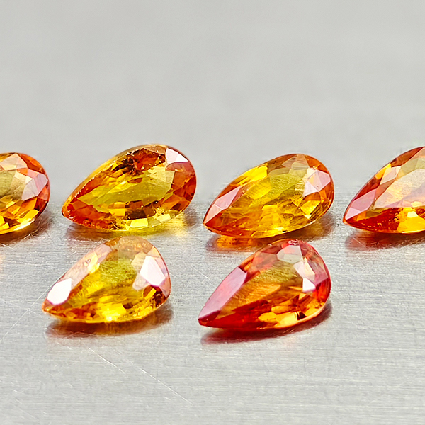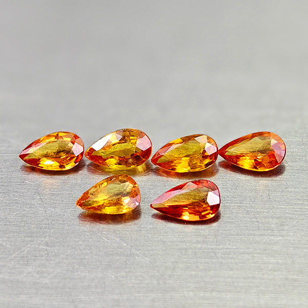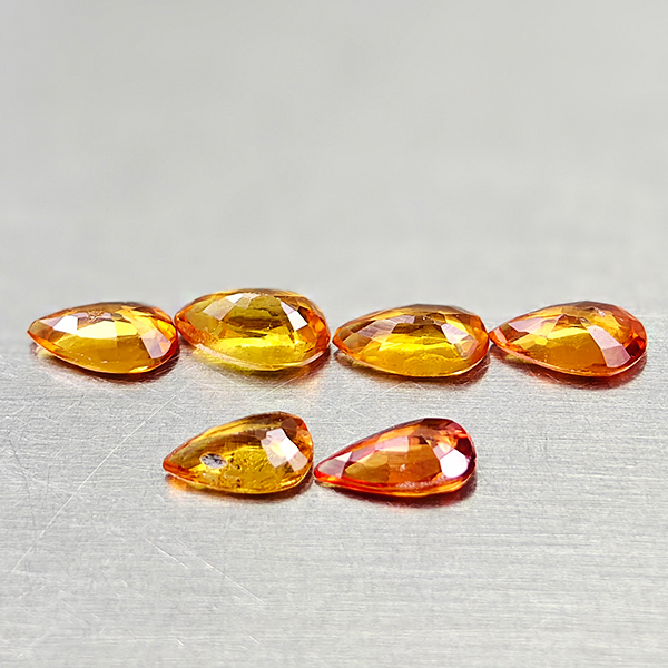 Natural Orange Yellow Songea Sapphire 1.27 Ct. 6 Pcs Pear Shape 5.3 Mm Gemstones