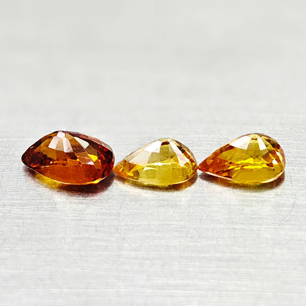 Natural Yellow Sapphire 1.86 Ct. 3 Pcs Pear Shape 6.4 x 5.7 x 3.2 Mm Gemstones