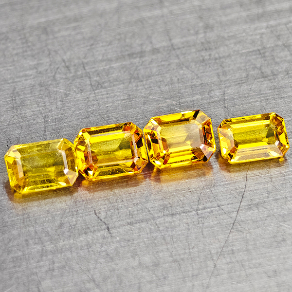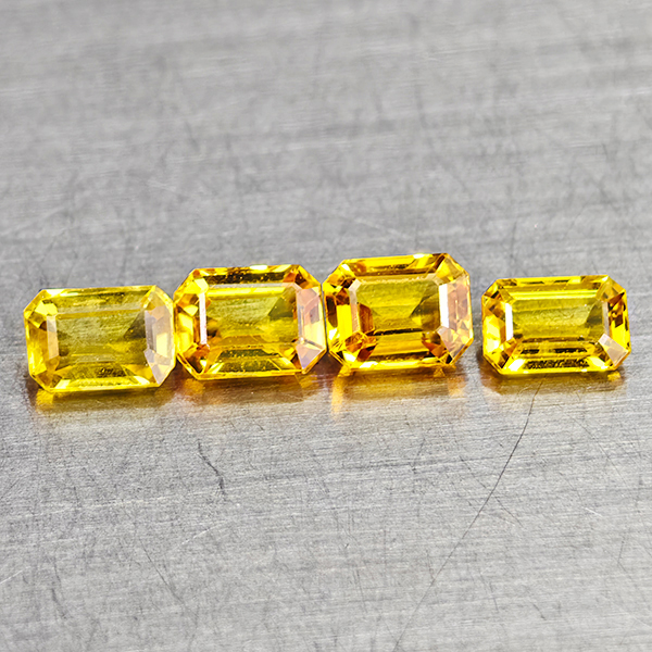 Natural Yellow Ceylon Sapphire 0.98 Ct. 4 Pcs Octagon Shape 4 x 2.7 Mm Gems