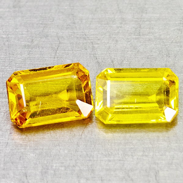 Natural Yellow Ceylon Sapphire 1.34 Ct. 2 Pcs Octagon Shape 6 x 4.1 Mm Gems