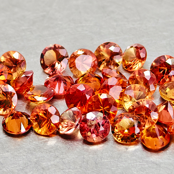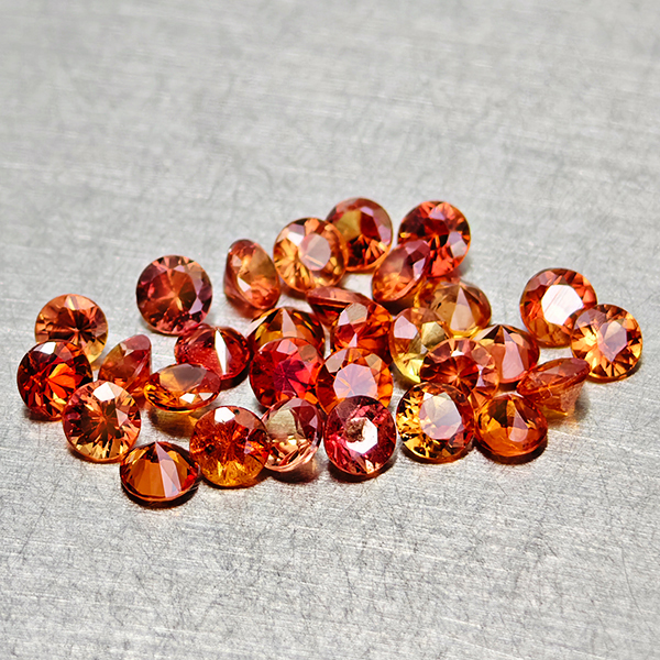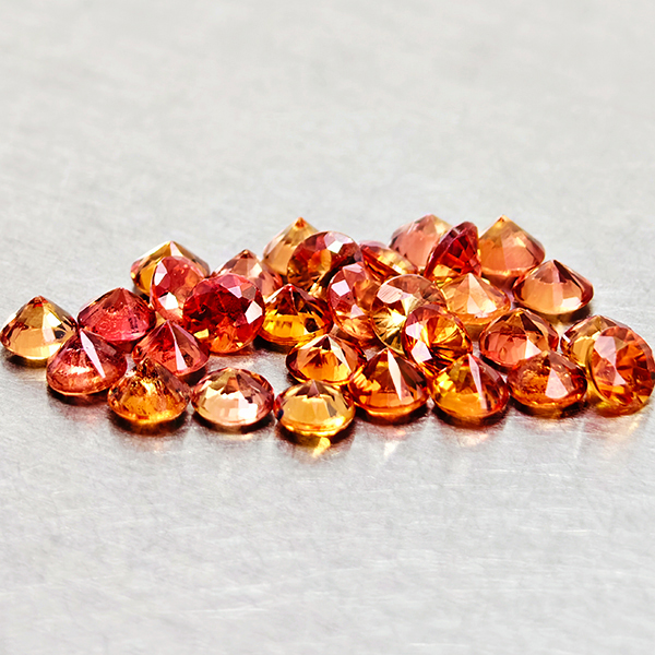 Natural Orange Red Songea Sapphire 2.39 Ct. 30 Pcs Round Diamond Cut 2.5 Mm Gems