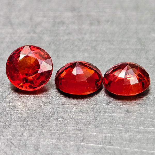 Natural Red Orangish Songea Sapphire 1.12 Ct. 3 Pcs Round Shape 4 Mm Gemstones