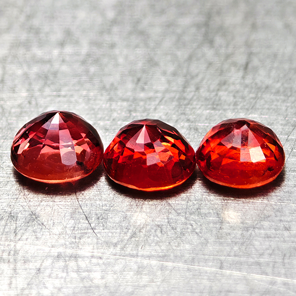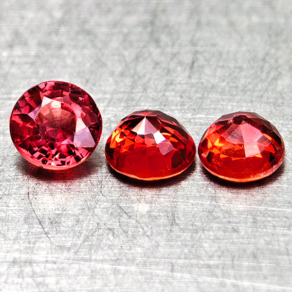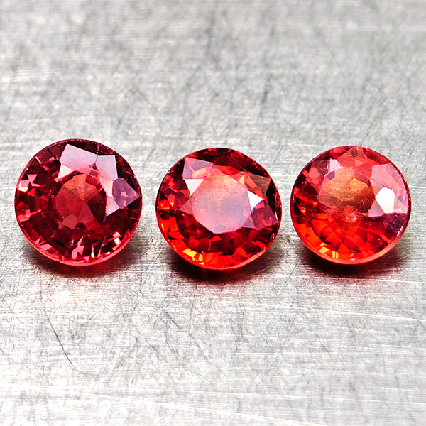 Natural Red Orangish Songea Sapphire 0.97 Ct. 3 Pcs Round Shape 3.8 Mm Gemstones