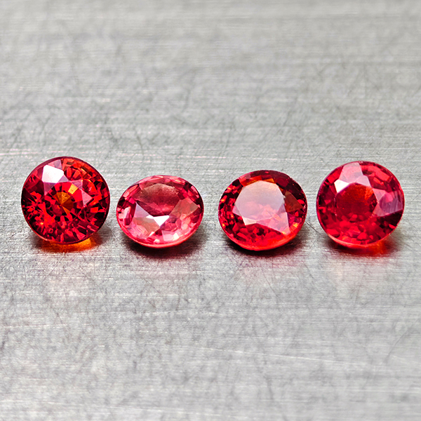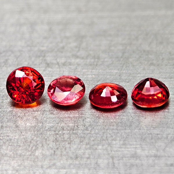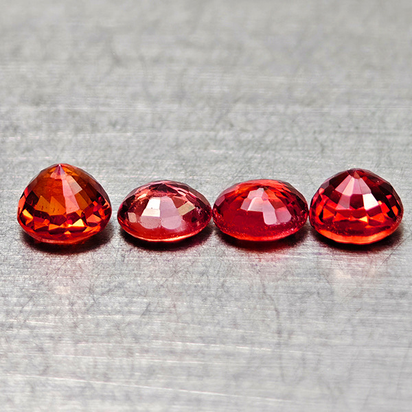 Natural Red Orangish Songea Sapphire 1.20 Ct. 4 Pcs Round Shape 3.7 Mm Gemstones