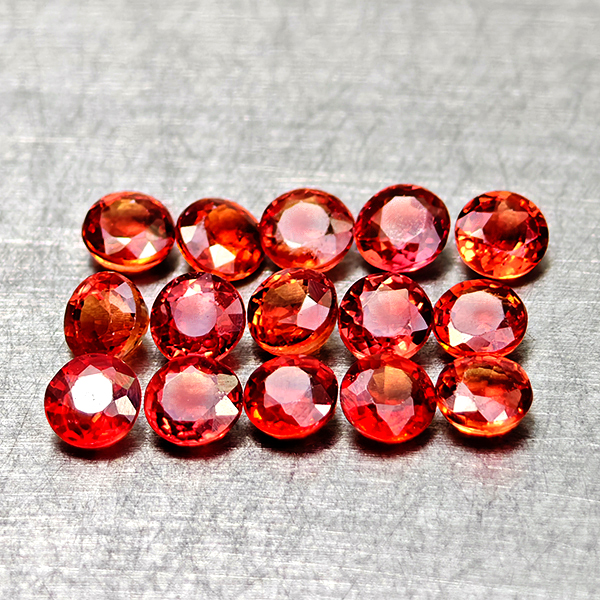 Natural Red Orangish Songea Sapphire 1.82 Ct. 15 Pcs Round Shape 2.7 Mm Gemstone