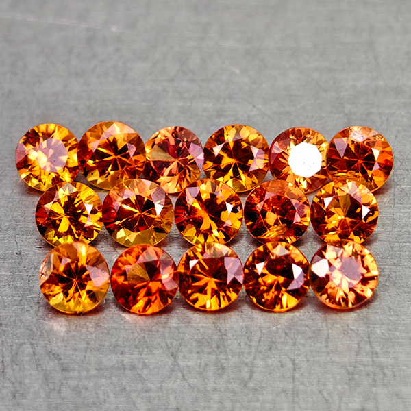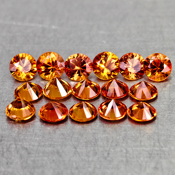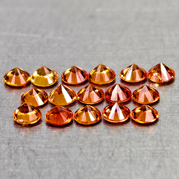 Natural Orange Red Songea Sapphire 1.09 Ct. 16 Pcs Round Diamond Cut 2.4 Mm Gems