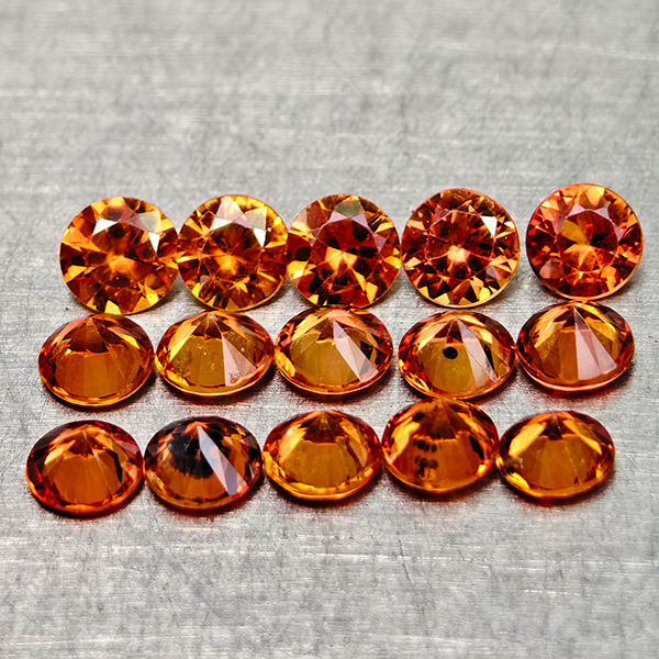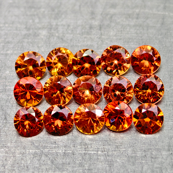 Natural Orange Red Songea Sapphire 1.60 Ct. 15 Pcs Round Diamond Cut 2.9 Mm Gems