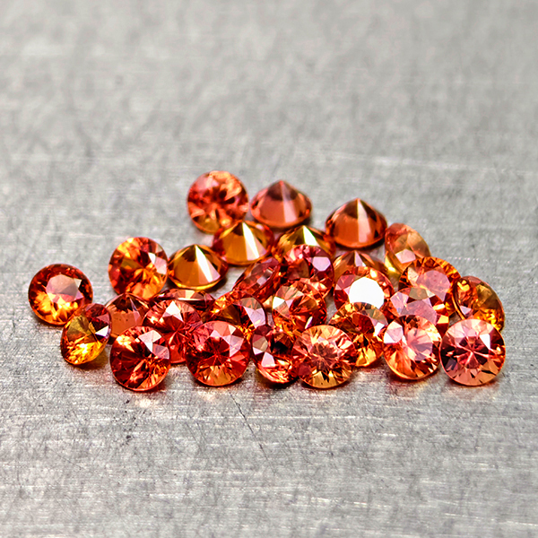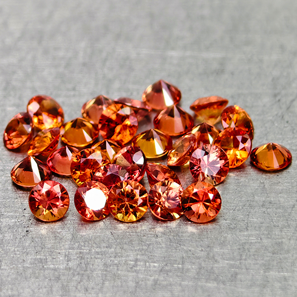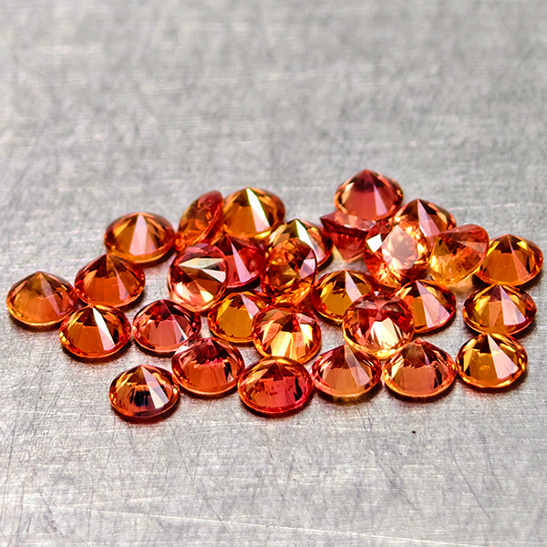 Natural Orange Red Songea Sapphire 1.27 Ct. 29 Pcs Round Diamond Cut 2.1 Mm Gems