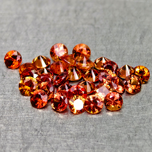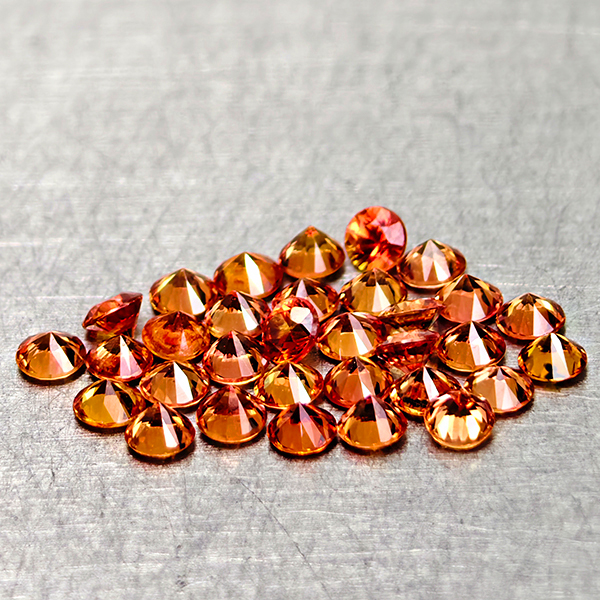 Natural Orange Red Songea Sapphire 1.58 Ct. 32 Pcs Round Diamond Cut 2.1 Mm Gems
