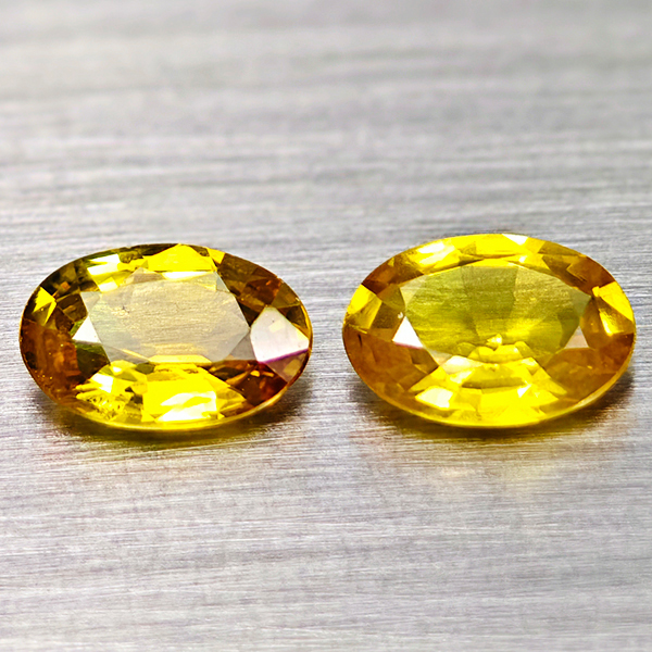 Natural Yellow Fancy Color Songea Sapphire 0.85 Ct. 2 Pcs Oval Shape Gemstones