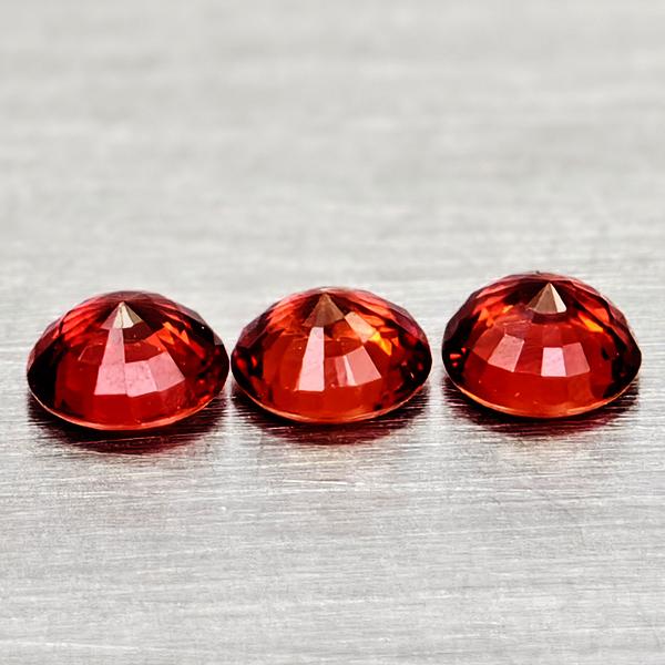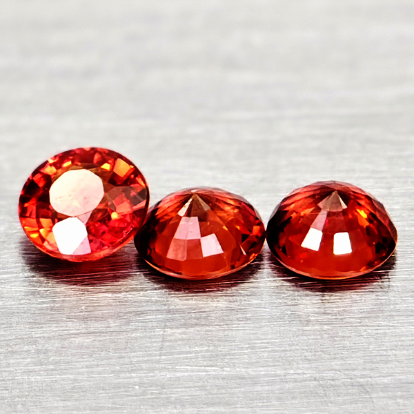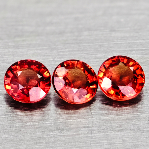 Natural Orangish Red Songea Sapphire 0.56 Ct. 3 Pcs Round Shape 3.3 Mm Gemstones
