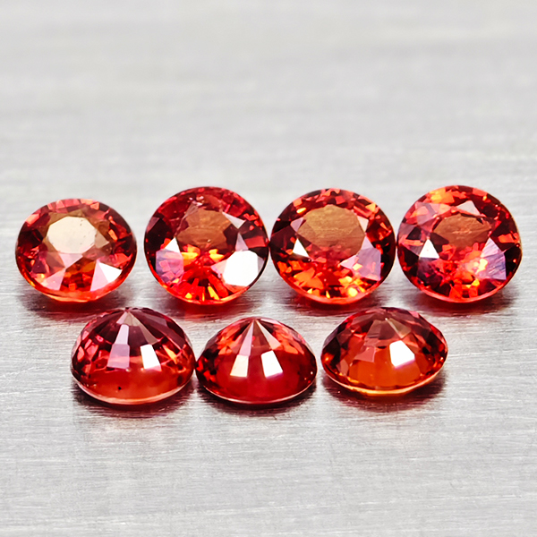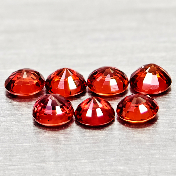 Natural Orangish Red Songea Sapphire 1.09 Ct. 7 Pcs Round Shape 3 Mm Gemstones