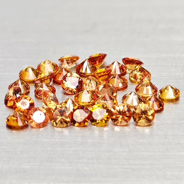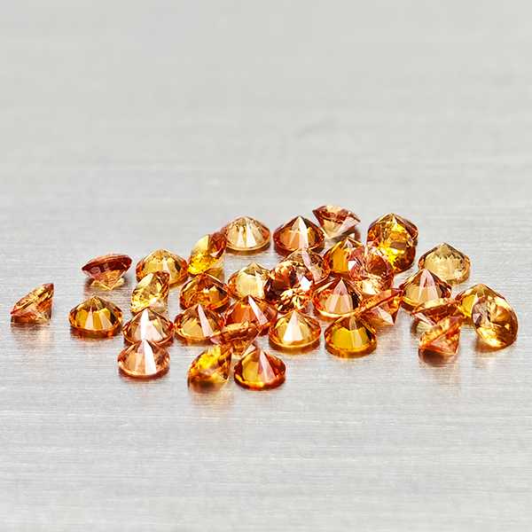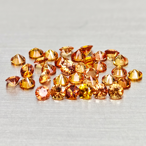Natural Orange Songea Sapphire 1.03 Ct. 34 Pcs Round Shape 1.9 Mm Gemstones