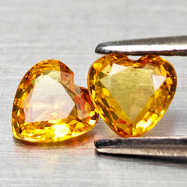 Natural Yellow Songea Sapphire 0.90 Ct. 2 Pcs Heart Shape 5 Mm Gemstones