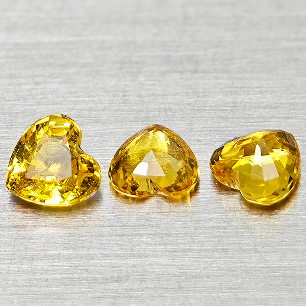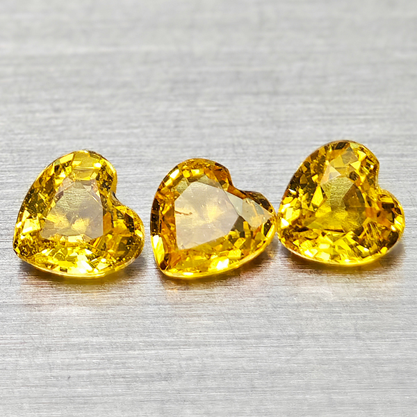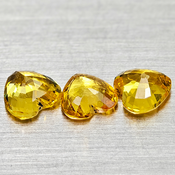 Natural Yellow Songea Sapphire 0.93 Ct. 3 Pcs Heart Shape 4 Mm Gemstones