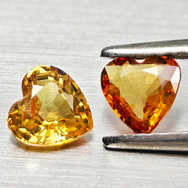 Natural Yellow Songea Sapphire 0.92 Ct. 2 Pcs Heart Shape 5 x 4.9 Mm Gemstones