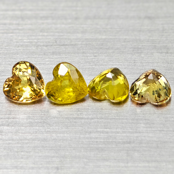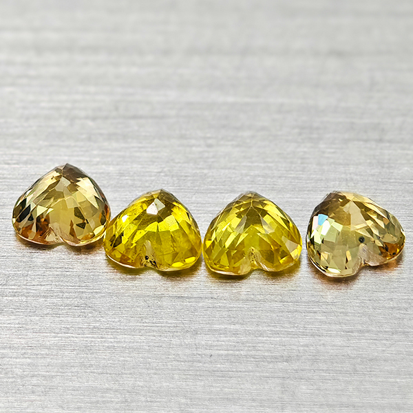 Natural Yellow Songea Sapphire 1.47 Ct. 4 Pcs Heart Shape 4.1 Mm Gemstones