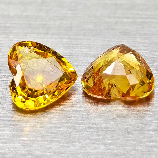 Natural Yellow Songea Sapphire 0.94 Ct. 2 Pcs Heart Shape 4.7 x 4.6 Mm Gemstones