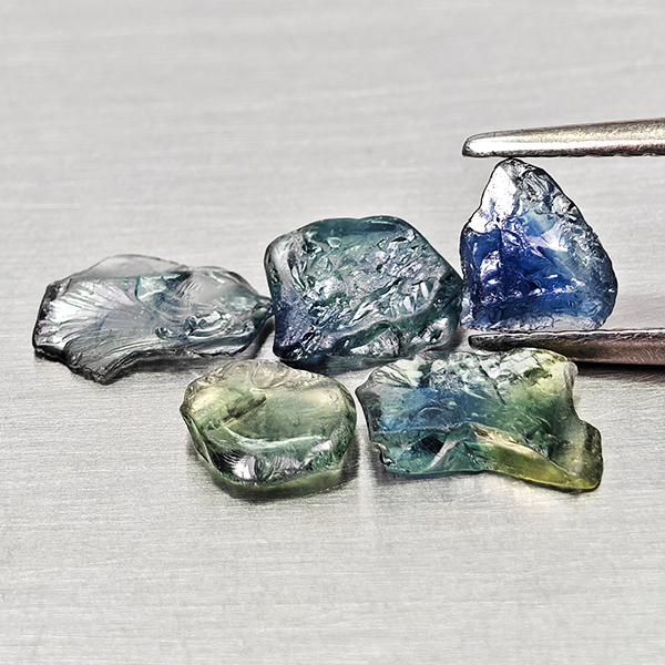 Natural Unheated Greenish Blue Sapphire 2.44 Ct. 5 Pcs Rough Shape Gemstones