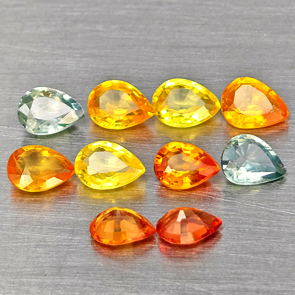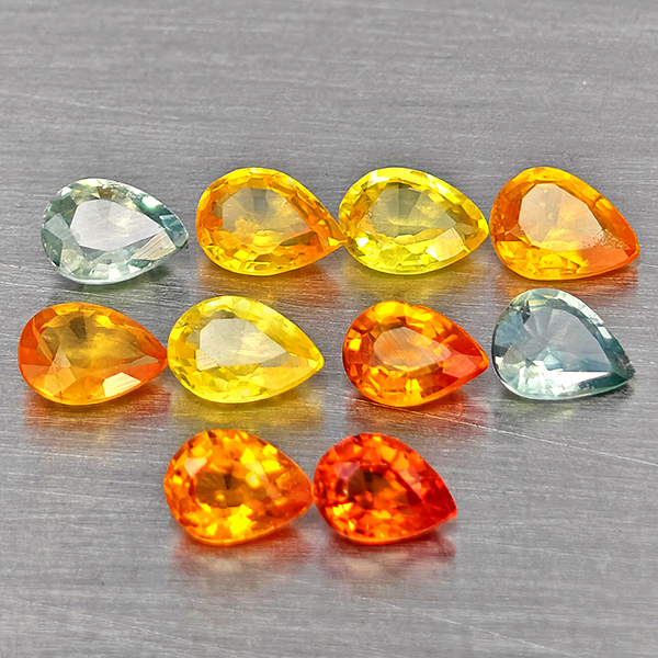 Natural Fancy Color Sapphire 1.69 Ct. 10 Pcs Pear Shape Gemstones From Tanzania