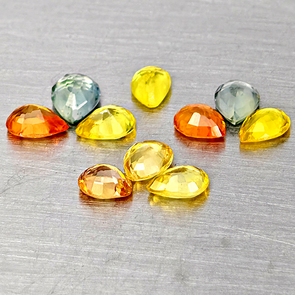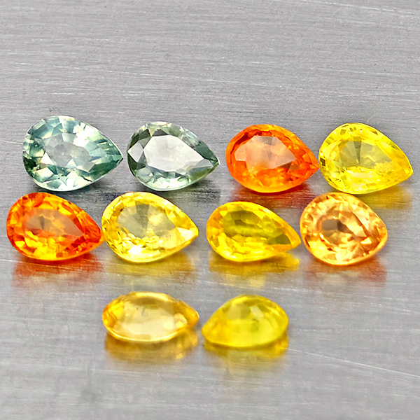 Natural Fancy Color Sapphire 1.66 Ct. 10 Pcs Pear Shape Gemstones From Tanzania