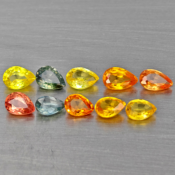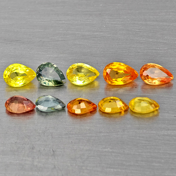 Natural Fancy Color Sapphire 1.68 Ct. 10 Pcs Pear Shape Gemstones From Tanzania