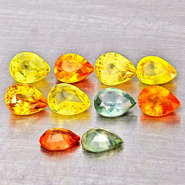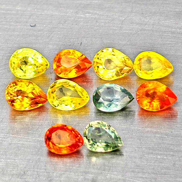 Natural Fancy Color Sapphire 1.72 Ct. 10 Pcs Pear Shape Gemstones From Tanzania