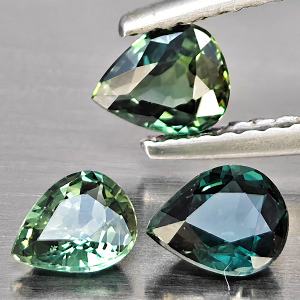 Natural Green Sapphire 1.11 Ct. 3 Pcs Pear Shape Gemstone From Thailand