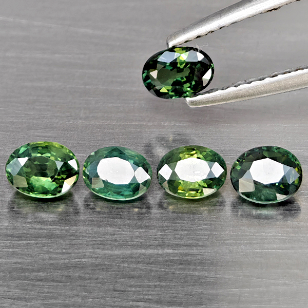 Natural Green Sapphire 1.87 Ct. 5 Pcs Oval Shape 5 x 3.8 Mm Gemstone from Thailand