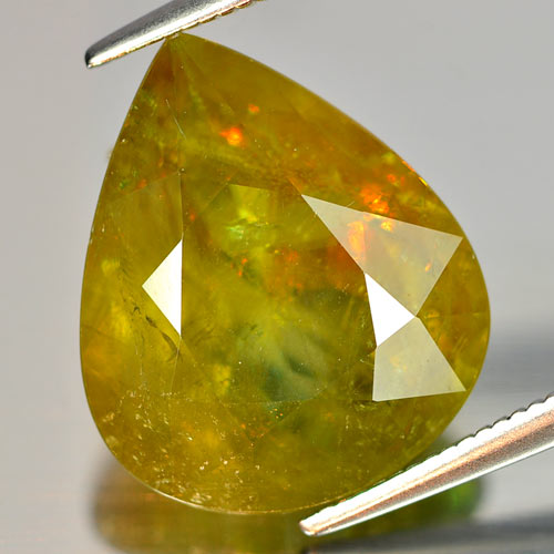 Multi Color Titanium Sphene Red Spark 8.72 Ct. Pear 15.4 x 12.9 Mm. Natural Gem