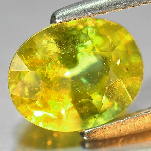 Green Sphene Red Spark 2.26 Ct. Oval 9.2 x 7.4 Mm. Natural Gemstone Unheated