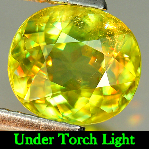 Intense Green Titanium Sphene Rainbow Spark 2.54 Ct. Oval 8.6 x 7.6 Mm. Natural