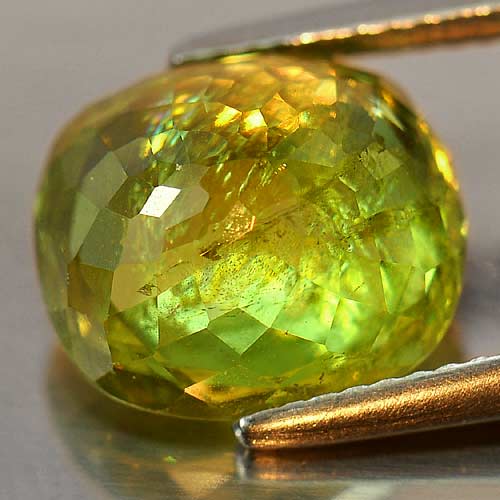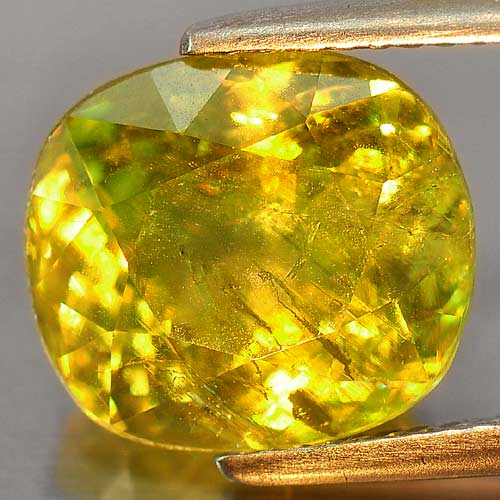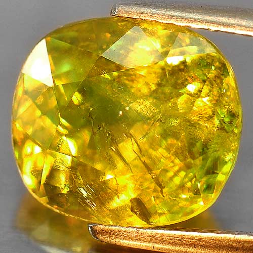Intense Green Titanium Sphene Red Spark 6.39 Ct Cushion 11.6 x 10.3 Natural Gem