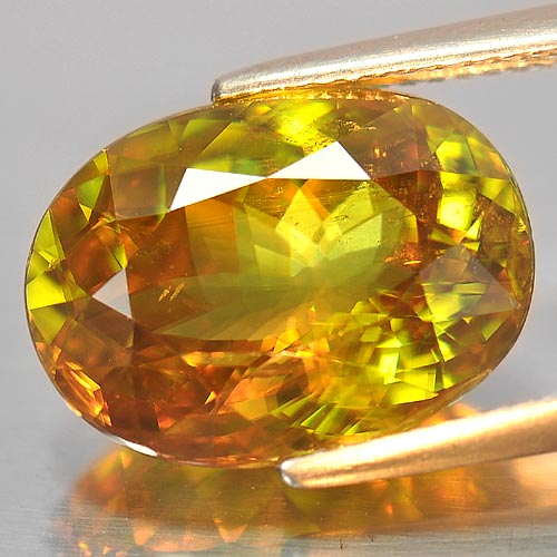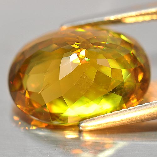 Intense Green Titanium Sphene Red Spark Oval 16.2 x 10.9 Mm. 10.48 Ct. Natural