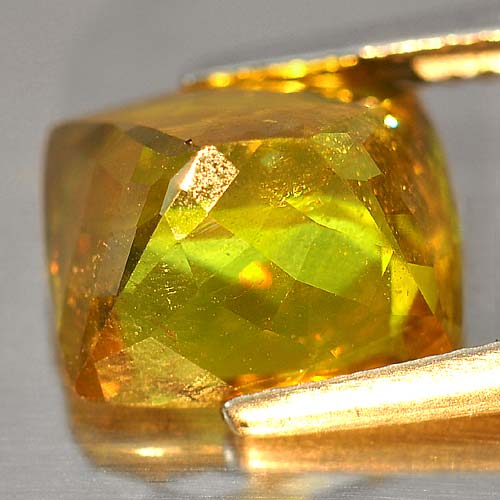 Intense Green Sphene With Rainbow Spark 5.16 Ct. Cushion Natural Natural Gem