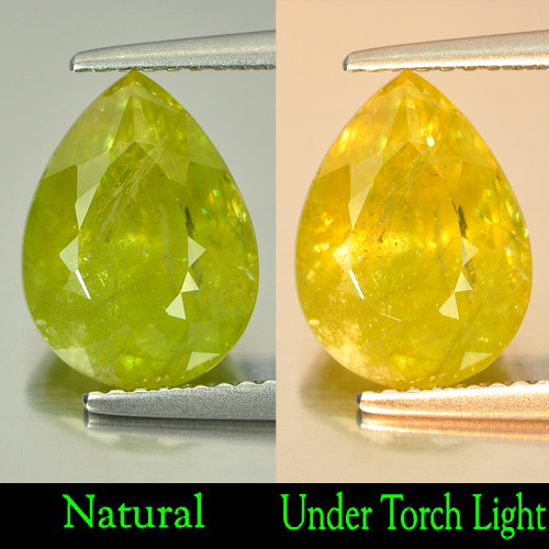 Yellowish Green Titanium Sphene Rainbow Spark 4.09 Ct. Pear Shape Natural Gem