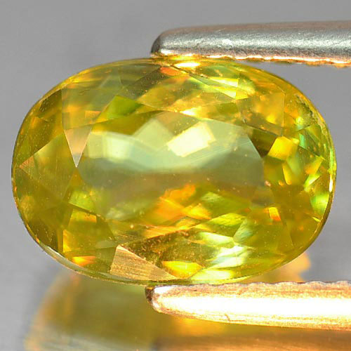 Green Titanium With Rainbow Spark Sphene 2.42 Ct. Oval 9.6 x 6.3 Mm. Natural Gem