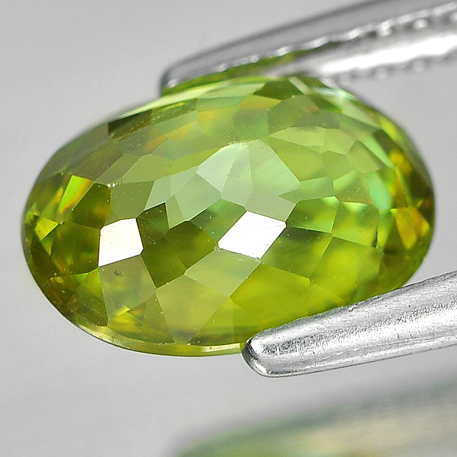 Yellowish Green Titanium Sphene With Rainbow Spark 2.32 Ct. Oval Natural Gem