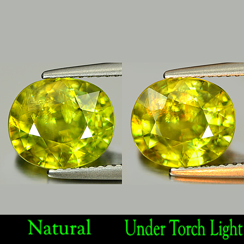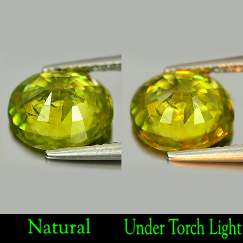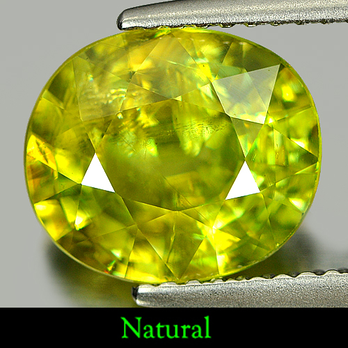 Intense Yellowish Green Titanium Sphene With Rainbow Spark 3.28 Ct. Oval Natural